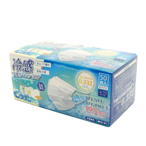 ≪冷感マスク≫ 接触冷温感、最大熱吸収得度0.332! 安心の不織布で、接触冷感! 不織布マスクの性能で重要な「ろ過率」 新型コロナウイルスは大きさ0.1μm! 飛沫感染を抑えるためには「VFE」が高い物を選ぶのがポイント! ●VFE:ウイルスろ過率99% 約1.7μmの大きさの粒子をどれだけカットできるか示した物。