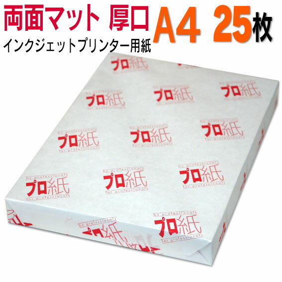 (下図) 商 品 仕 様 プリンター設定について プロ紙【両面マット】A4【厚口】 25枚 インクジェット対応マット紙 (209.4gベース)使用 紙厚:0.28mm サイズ:A4サイズ 【設定例】 キャノン:プロフォトペーパー エプソン:フォト光沢紙 プロ紙は、染料インク・顔料インク双方に対応しております。