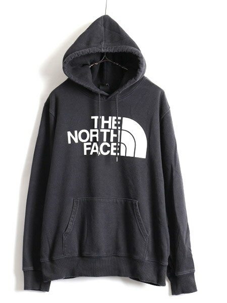 【10/8 マラソン7倍!】 人気 黒 ■ ノースフェイス ビッグロゴ プリント スウェット フード パーカー ( メンズ 男性 L ) 古着 The North Face トレーナー スエット| US古着 中古 アウトドア 裏起毛 プルオーバー プリントパーカー フードパーカー ロゴパーカー モノトーン