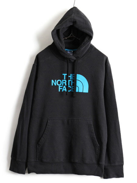 【10/8 マラソン7倍!】 人気 黒 ■ ノースフェイス ロゴ プリント スウェット フード パーカー ( 男性 メンズ L )古着 The North Face トレーナー スエット 裏起毛| 古着 中古 アウトドア プルオーバー スウェットパーカー フードパーカー ロゴパーカー ノース プリントパ