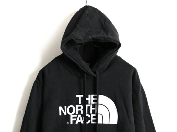 大きいサイズ XL 人気 黒 ■ ノースフェイス ロゴ プリント スウェット フード パーカー ( 男性 メンズ ) 古着 The North Face トレーナー| 中古 ノース プリントパーカー フーディー フードパーカー スエット プルオーバー ロゴパーカー アウトドア ブラック モノトーン